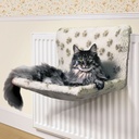 Kumfy Kradle on patteripeti on lämmin ja viihtyisä rentotumispaikka kissalle. Patteripeti on vuorattu pehmeällä Sherpa-fleecekankaalla. Päällisessä on kaunis kermanvaalea sävy ja tyylikäs tassunjälkikuvio, joka sopii mihin tahansa sisustukseen.